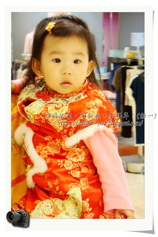 穿得一身喜氣的羽羽,除了得到家中長輩的一致讚 賞外,就連初一帶她出門走春,路人也連連和羽羽相互拜年,得到好人緣!^^